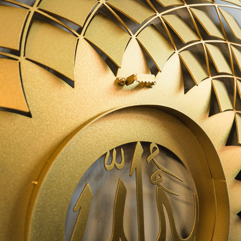 We as Muslims recite the beautiful 99 Names Of Allah (SWT) daily in our Salah for protection, good health, comfort, and wealth. Let this stunning wall art helps you to recite and makes you remember Allah (SWT), creator of everything. Made of steel Electrostatic matte powder coating Easy to hang (pre-attached sawtooth hanger at the back of the wall art) Beautiful 3D effect. You can also bend the free parts on the wall art to give it a much more 3D view. Dimension : 67 x 67 cm (26 x 26 inches) - 3.4 Kg (7.5 lbs)