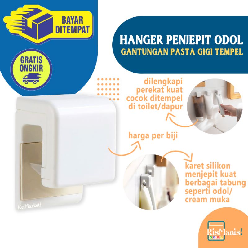 Wall Toothpaste Holder adalah gantungan tempel dinding dengan karet silikon penjepit pada bagian dalamnya sehingga mampu menahan berbagai macam produk dalam kemasan tabung pasta seperti misalnya pasta gigi, krim obat-obatan, lotion, sabun pembersih wajah maupun gel rambut.