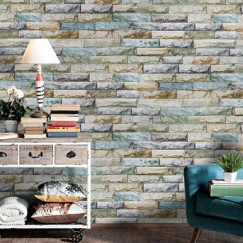 Detail Wallpaper Dinding Batu Alam Warna Warni 8m++ x 45cm