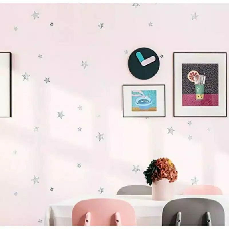 Detail Wallpaper Dinding Motif Bintang Dasar Pink 10m x 45cm