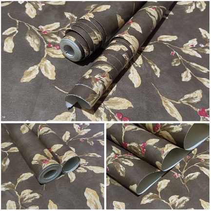 Wallpaper Dinding Motif Ranting Daun Coklat Panjang 9Meter+++ x Lebar 45cm