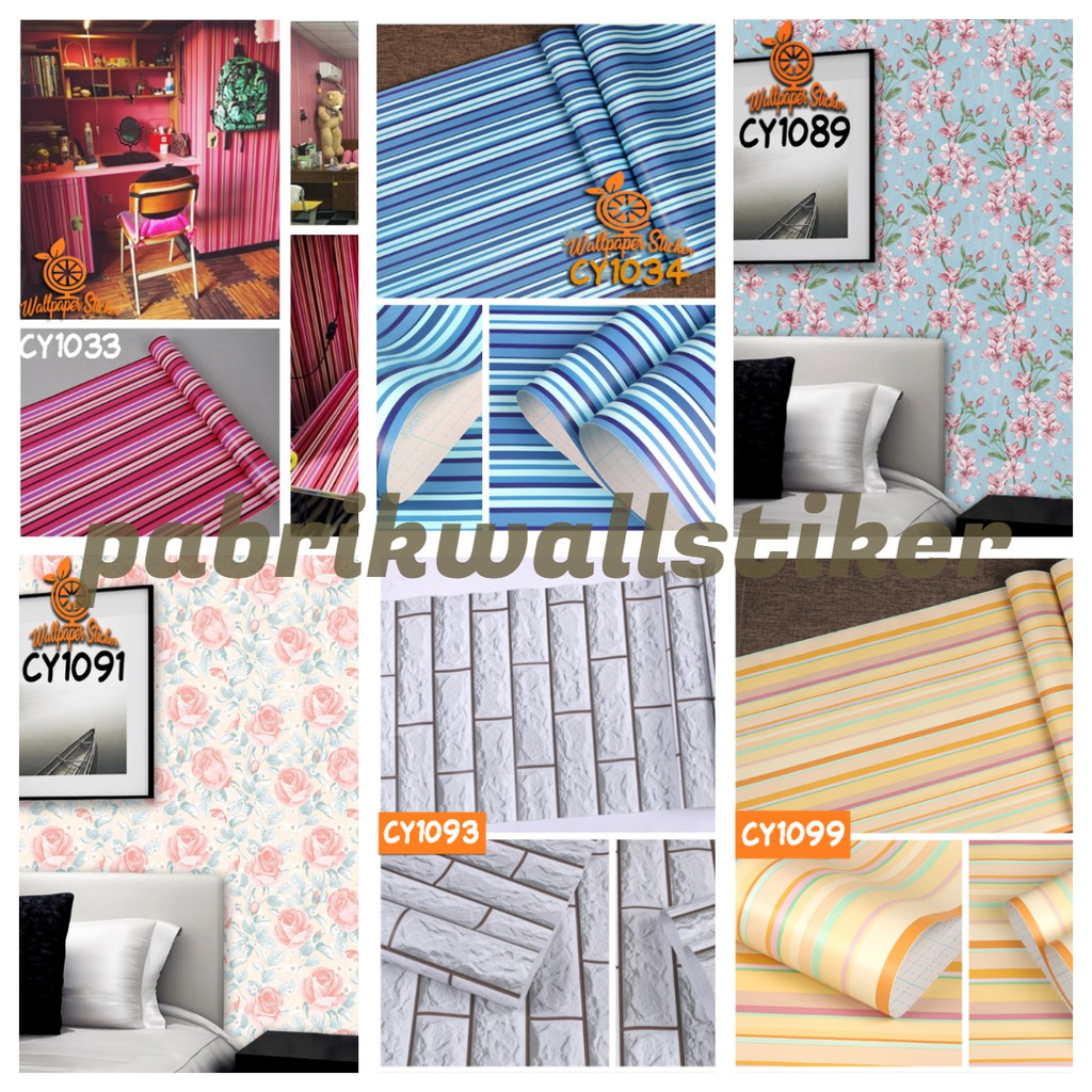 Detail Wallpaper dinding Type Cy Wallpaper Sticker Wallpaper Stiker Dinding Motif Bata Garis Batik Karakter