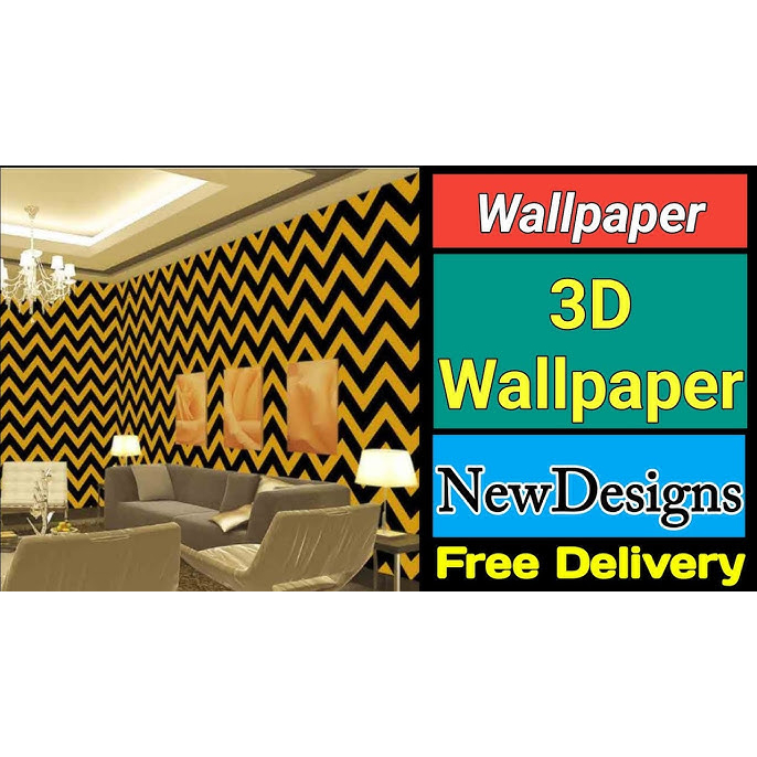 Detail WALLPAPER GELOMBANG STRIP 3D KUNING HITAM NEW MARKAS