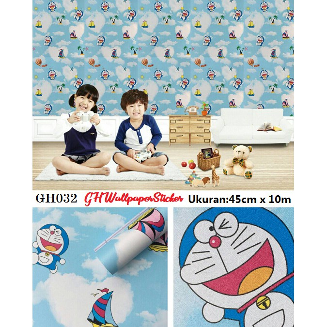 Detail Wallpaper Sticker Dinding Motif Doraemon Pantai Ukuran Panjang 10Meter x Lebar 45CM
