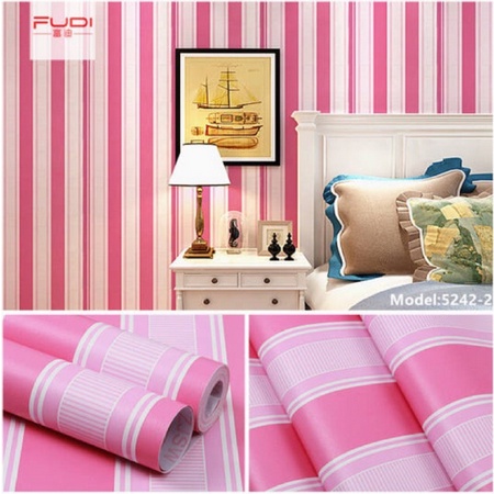 Wallpaper dinding sticker ukuran 45 cm x 8 m Motif Salur Pink