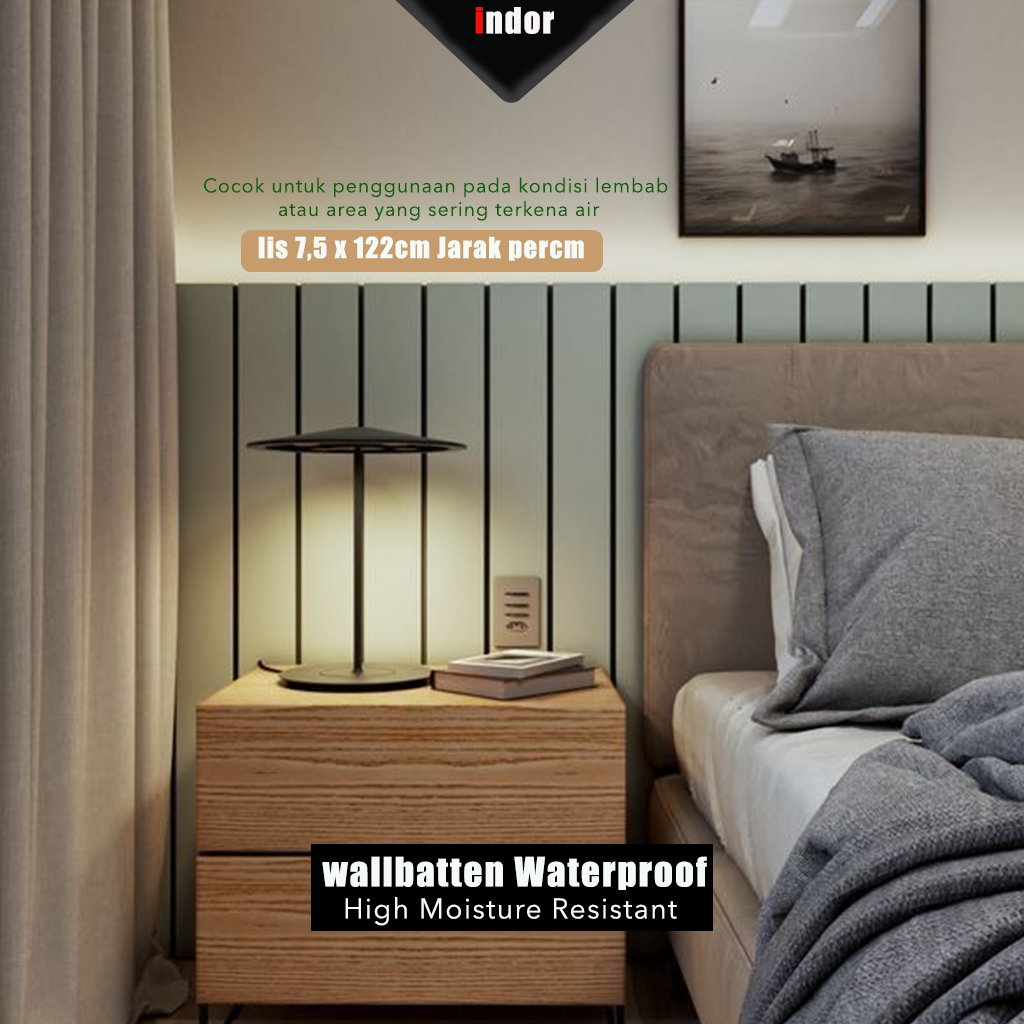 Wallbatten HMR - Material HMR (High Moisture Resistant) - Ukuran 3x122cm, 5x122cm, 7.5x122cm dan 10x122cm - Tebal 9 - Bahan Mentah Tanpa Cat (Bisa menggunakan cat warna sesuai pilihan)