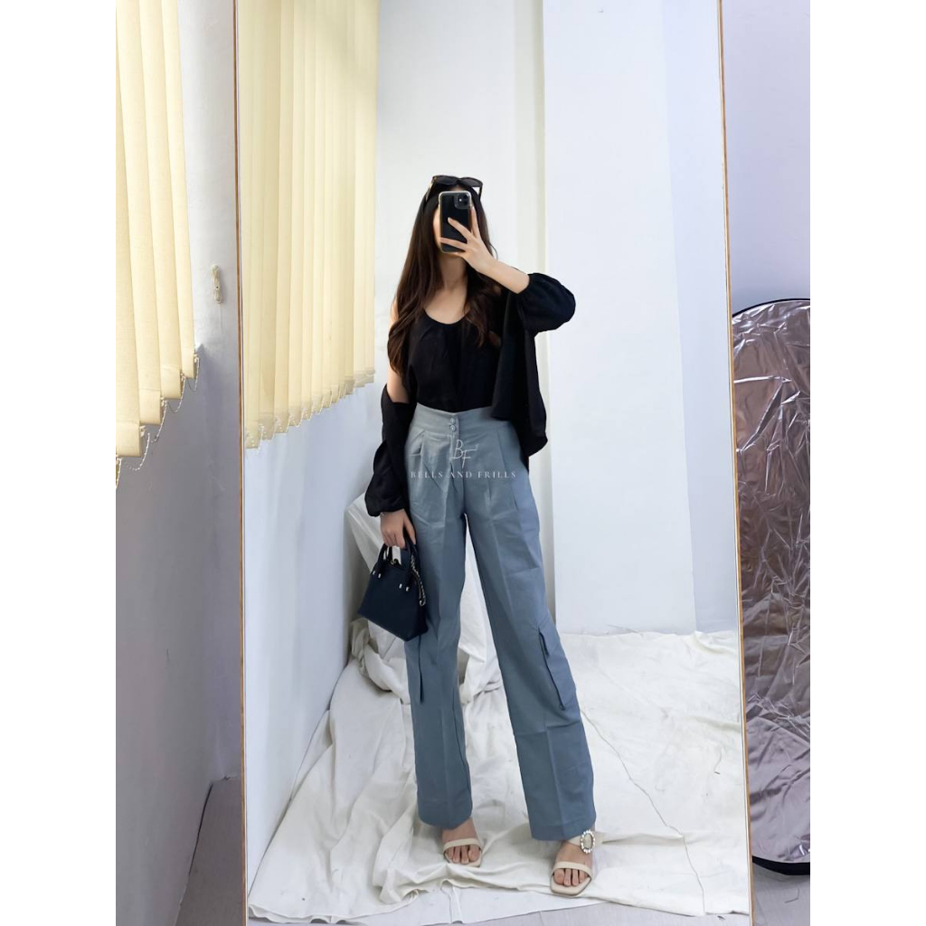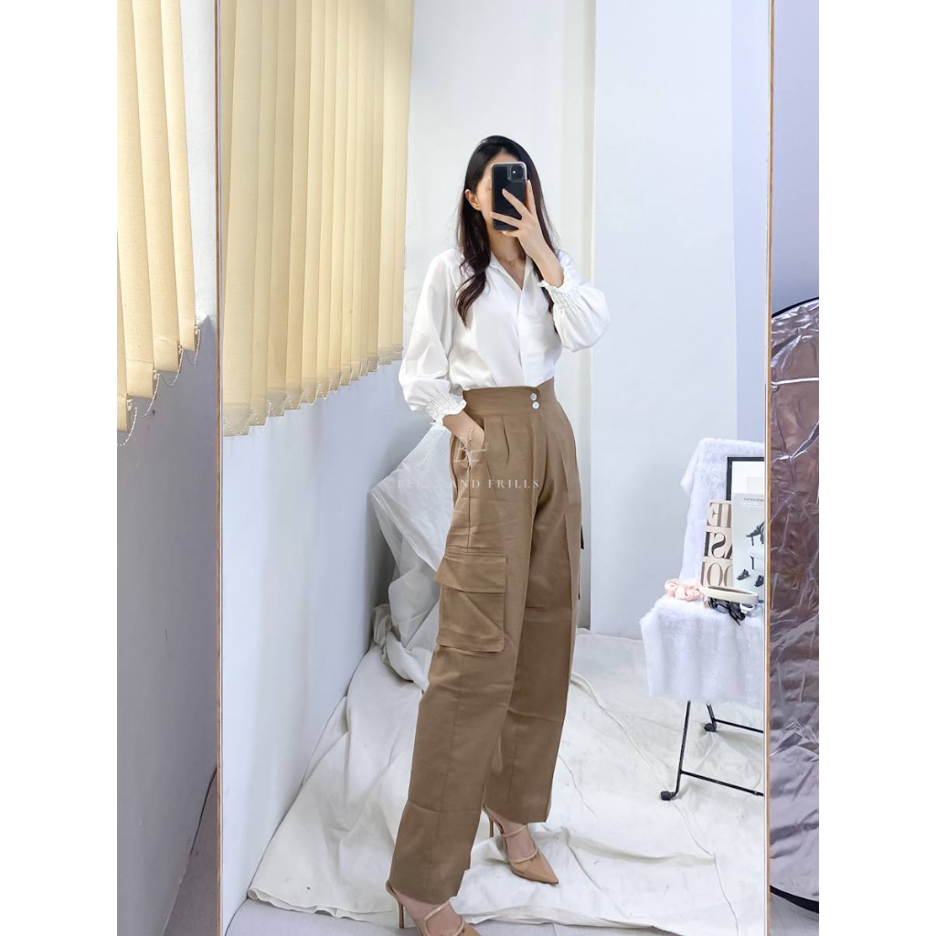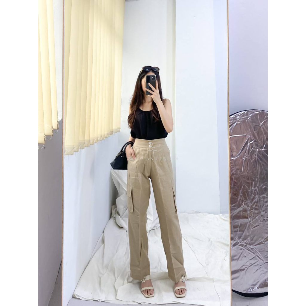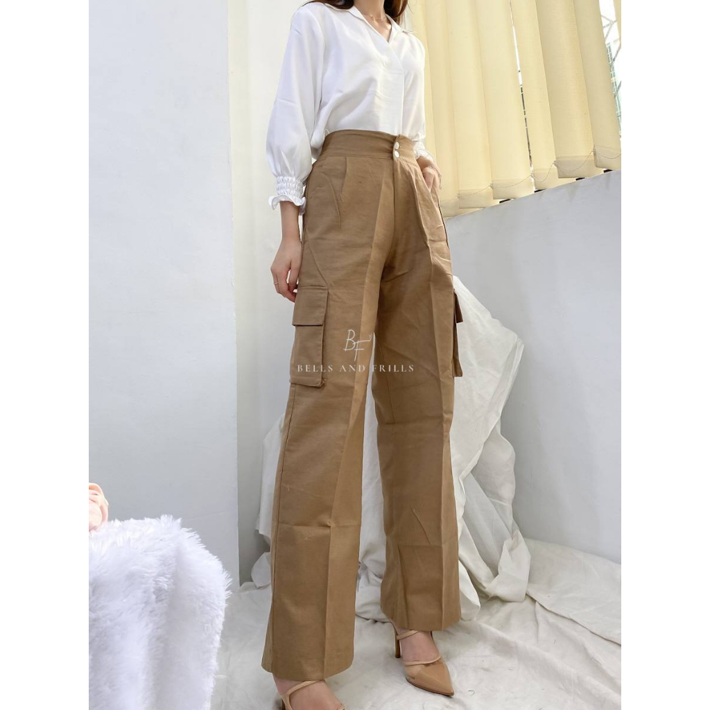 Pakaian Wanita > Celana Panjang & Legging > Celana Panjang Cargo > WALTER CARGO HIGHWAIST LINEN - Celana Kulot Cargo - Celana Kargo Wanita - Joger Highwaist Loose P20