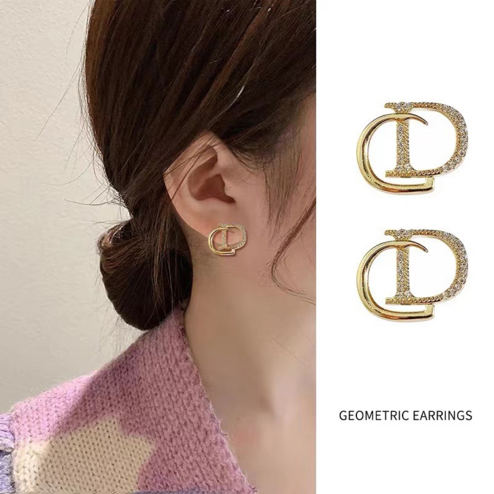 Detail Wanita CD Huruf Stud Korea S925 Perak Anting Bertabur Berlian Sederhana Telinga SWET Perhiasan Hati