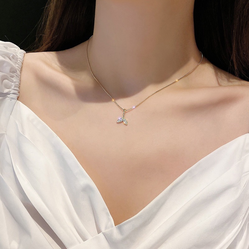 Detail Wanita Fashion Fishtail Kalung Berlian Imitasi Alloy Necklace