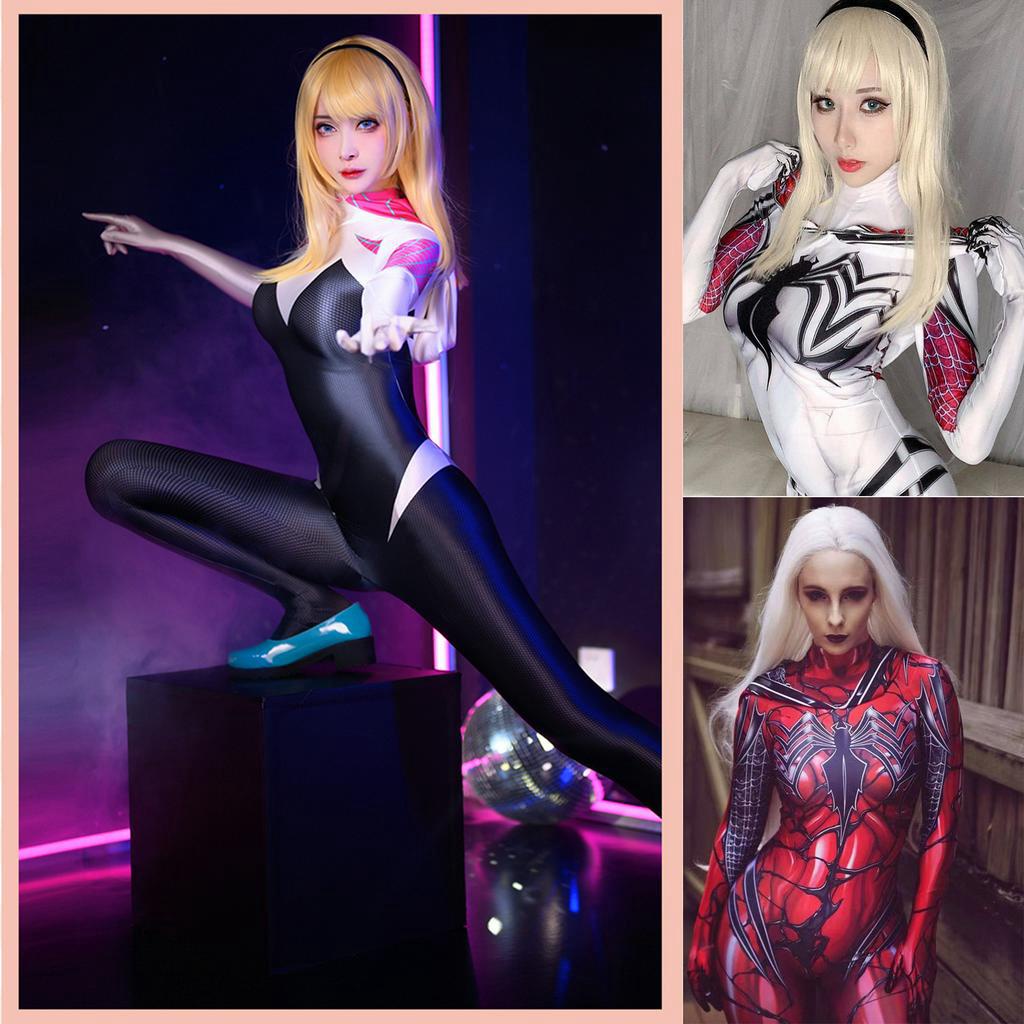Pakaian Wanita > Kostum > Wanita Spiderman parallel universe cos wanita jumpsuit Celana ketat cosplay dari film Gwen laba-laba betina Ukuran anak dan dewasa