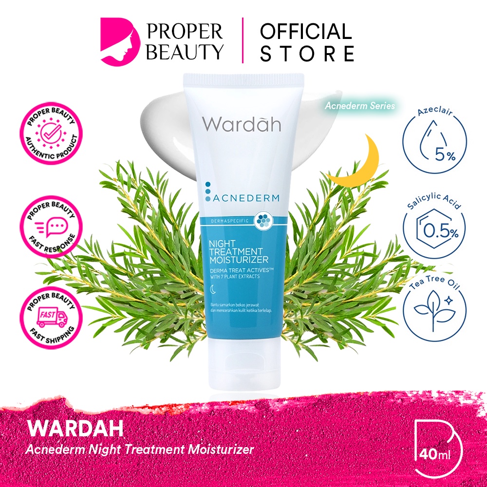 Perawatan & Kecantikan > Perawatan Wajah > Pelembab Wajah > WARDAH Acnederm Night Treatment Moisturizer Indonesia / Pelembab Wajah 40ml / Derma Treat Actives With 7 Plant Extracts / Samarkan Bekas Jerawat Mencerahkan Kulit Terlelap / Skincare Face Care Series / Foaming Cleanser Toner Serum Day Acne Spot Gel Powder