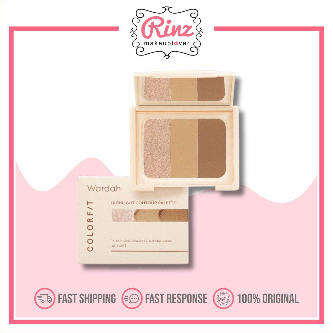 Wardah Colorfit Highlight Contour Palette, 3-in-1 face palette, your all-in one defining compact. Palette dengan 3 kegunaan praktis yang terdiri dari creamy contour, creamy concealer, dan shimmer highlighter. Hadir dalam 2 shades, light dan medium, Colorfit Highlight Contour Palette diformulasi dengan Microsmooth Ultra Pigment yang memberikan warna intense dan blendable hanya dengan sekali usapan. Mudah digunakan untuk pemula hingga makeup savvy. Teknologi Soft Focus Result menghasilkan makeup yang lebih terdefinisi, pori pori tersamarkan, dan wajah yang halus. Diperkaya dengan vitamin E yang memiliki benefit sebagai antioxidant, pelembab, dan melindungi kulit dari radiasi UVB. Dermatologically tested. Non acnegenic. Non comedogenic.