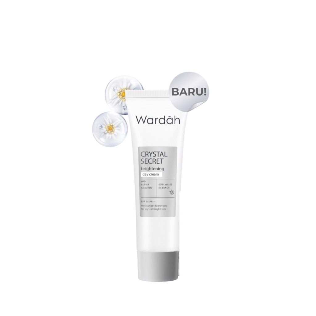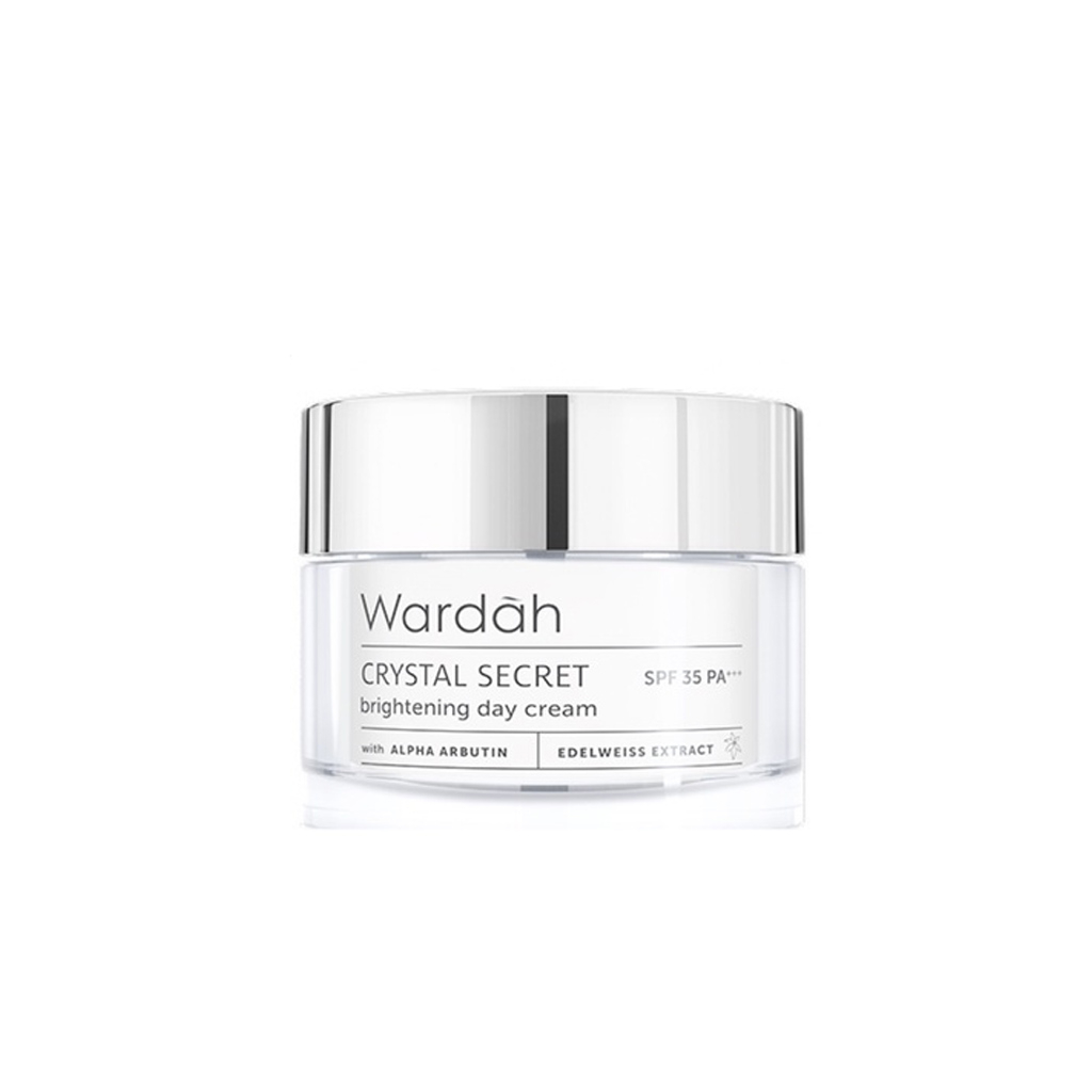 Wardah Crystal Secret Brightening, Day Cream untuk mencerahkan, melembapkan kulit, dan melindungi kulit dari UVA/UVB dengan SPF 35 PA+++ untuk kulit cerah sebening kristal. Cocok untuk kulit normal - kering.