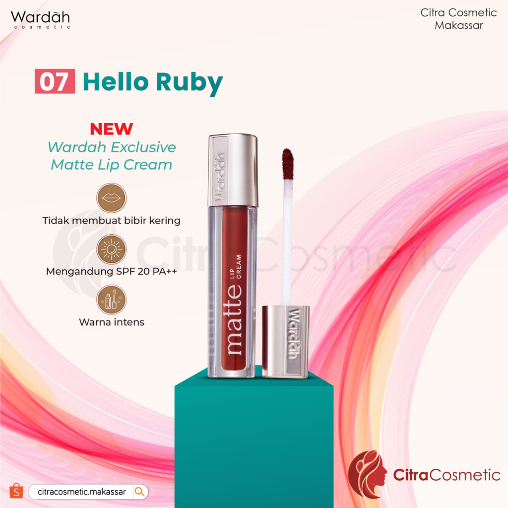 Wardah Exclusive Matte Lip Cream adalah lip cream terbaru dari produk Wardah dengan warna pigmennya yang begitu memikat serta diperkaya oleh Vitamin E yang berfungsi untuk menjaga kelembapan bibir sehingga bibir tetap sehat, terawat. Hasilnya matte tanpa membuat bibir Anda kering dan long lasting. Cocok digunakan untuk pemakaian sehari-hari. Kemasan lip creamnya yang praktis sangat mudah untuk Anda gunakan sepanjang hari. Sangat praktis, tidak mudah tumpah dan mudah dibawa kemana saja.