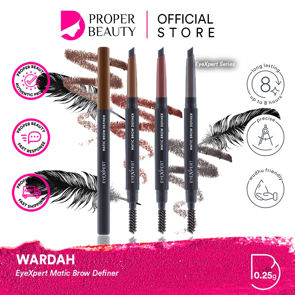 Video perkenalan produk WARDAH EyeXpert Matic Brow Definer Indonesia / Pensil Alis 0.25g / Alis Presisi Warna Intens Natural Waterproof / Anti Air Tahan Lama Powdery / Light Brown Dark Grey Black / Coklat Muda Tua Abu Hitam / Cosmetic Makeup Face Eye Make Up / Eye Xpert Series. Sumber: Shopee.