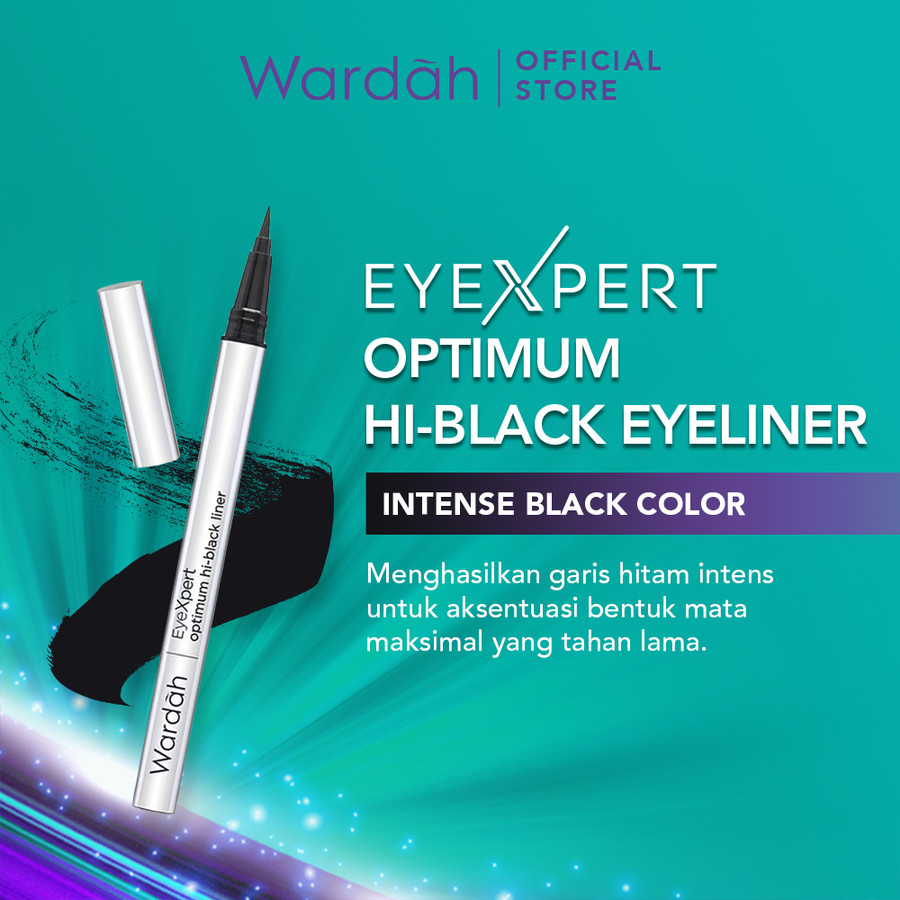 Wardah EyeXpert Optimum Hi-Black Liner, Eyeliner berbentuk cair dengan warna hitam yang intens serta cepat kering. Memberikan kilauan natural sehingga memperindah dan menegaskan bentuk mata dengan natural.