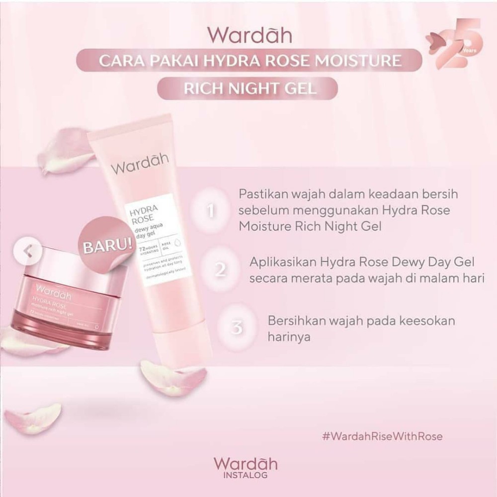 Detail Wardah Hydra Rose Gel to Foam Cleanser - Dewy Aqua Day Gel - Moisture Rich NIght Gel
