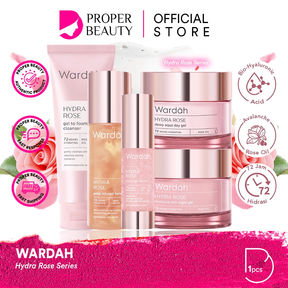 Perawatan & Kecantikan > Kecantikan Lainnya > WARDAH Hydra Rose Series Indonesia / Gel To Foam Cleanser Petal Infused Toner Micro Gel Serum / Moisture Rich Day Night Gel / Skincare Face Facial Care Series / Treatment Perawatan Wajah / Pembersih Muka Hydrating Moisturizer Pelembab Melembabkan / Paket