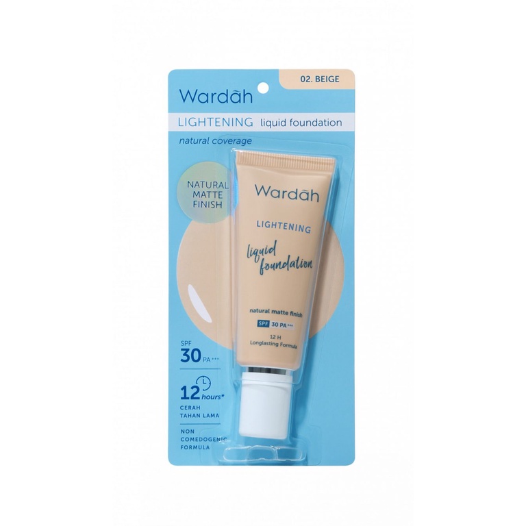 Wardah Lightening Liquid Foundation adalah liquid foundation yang terasa ringan dan nyaman digunakan sehari-hari. Memilki coverage medium, mencerahkan, dan tahan lama hingga 12 jam. Varian: 1.02 Beige 2.03 Ivory