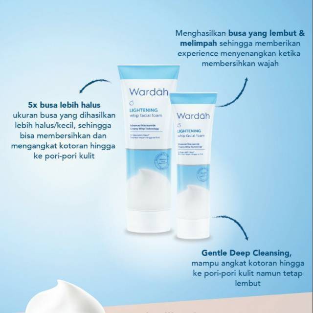 Lightening Whip Facial Foam dengan inovasi Creamy Whip Technology,hasilkan busa selembut whip yang creamy dan 5x lebih halus sehingga bantu bersihkan kulit hingga ke pori-pori namun terasa lembut di kulit.Dikombinasikan dengan Advanced Niacinamide,kulit tampak lebih segar,lembut sekaligus cerah bercahaya dengan 1 kali pemakaian