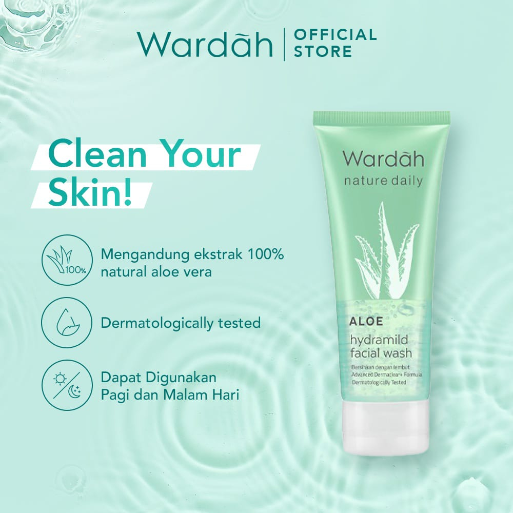 Pembersih wajah yang membersihkan kulit secara lembut merata dengan busa dan wangi yang ringan. - Hydramild Aloevera Extract Extrak aloevera natural yang dikenal memberikan efek menenangkan, melembabkan sekaligus memiliki kemampuan anti-bakteri alami - Triple Hydrating Complex Perpaduan bahan pelembap pilihan dengan Natural Moisturizing Factor bantu berikan kelembapan ekstra menenangkan sepanjang hari tanpa rasa lengket - Advanced DermaClear+ Formula - Formula dengan komponen yang berasal dari asam amino hasilkan busa lembut untuk bersihkan kotoran, minyak berlebih dan kuman yang menargetkan hingga kedalam pori-pori