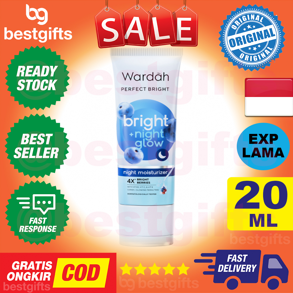 WARDAH PERFECT BRIGHT NIGHT MOISTURIZER BRIGHT + NIGHT GLOW - 20 ML ✅ READY STOCK (LANGSUNG ORDER SAJA) ✅ MADE IN INDONESIA ✅ 20 ML ✅ BPOM