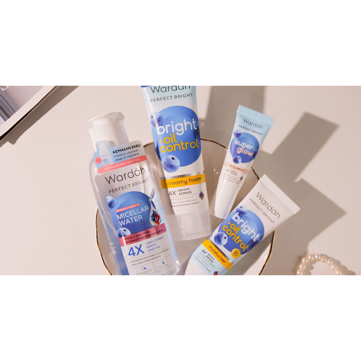 4x bright berries kombinasi 4 macam berry dengan kandungan Vit B3 Vit C dan Vit E yang formulannya bentu mencerahkan menutrisi serta membantu meratakan warna kulit bekas jerawat