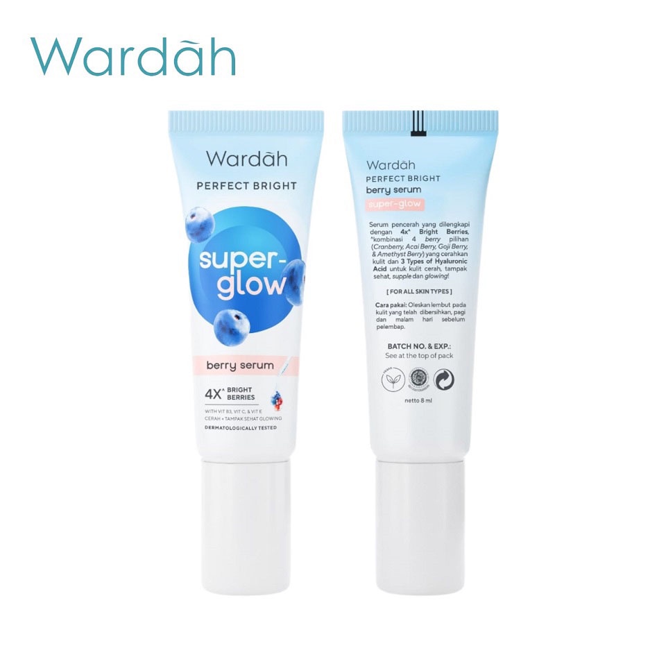 Wardah Perfect Bright Super Glow Berry Serum 8ml Serum yang membantu mencerahkan dan menutrisi kulit, meratakan warna kulit kusam, dan menyamarkan bekas jerawat untuk kulit cerah, tampak sehat, supple dan glowing!
