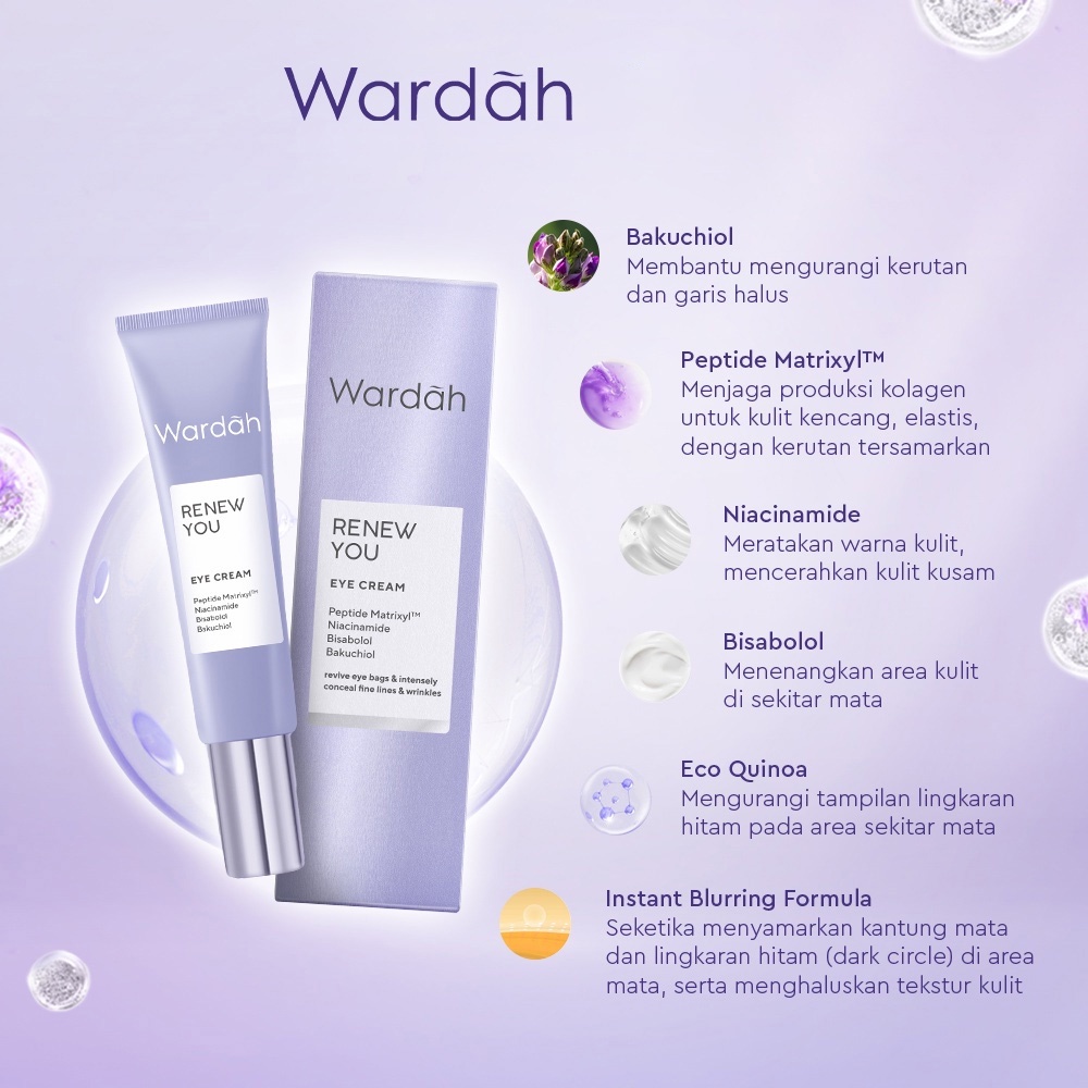 - Wardah Renew You Anti Aging Night Cream merupakan krim pelembap multi aksi dengan Advanced RecoverAge SystemTM yang memberi perawatan pada kulit wajah bahkan di saat tidur. Dilengkapi dengan 5 Botanical Extracts untuk membantu melembapkan kulit serta Peptide untuk menjaga elastisitas kulit. Kulit wajah pun akan terasa kencang, tampak lebih cerah.
