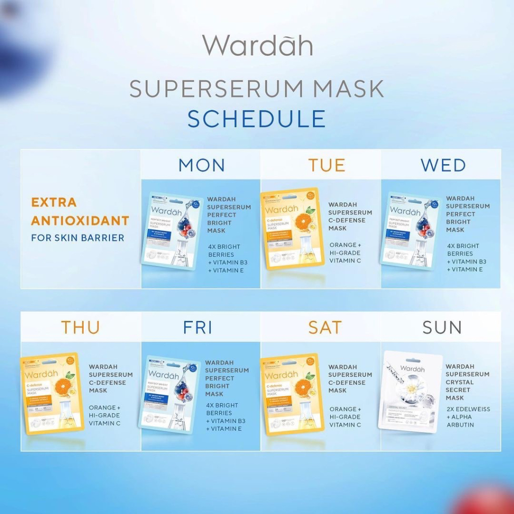 Wardah Lightening SuperSerum Mask Sheet mask dengan 100% degradable seaweed yang natural mengandung essence yang diformulasikan dengan kandungan 4x Advanced Niacinamide^^ dan Licorice Extract untuk mencerahkan, melembapkan, serta menyamarkan bekas jerawat. Untuk kulit cerah, terlindungi, dan tampak sehat!