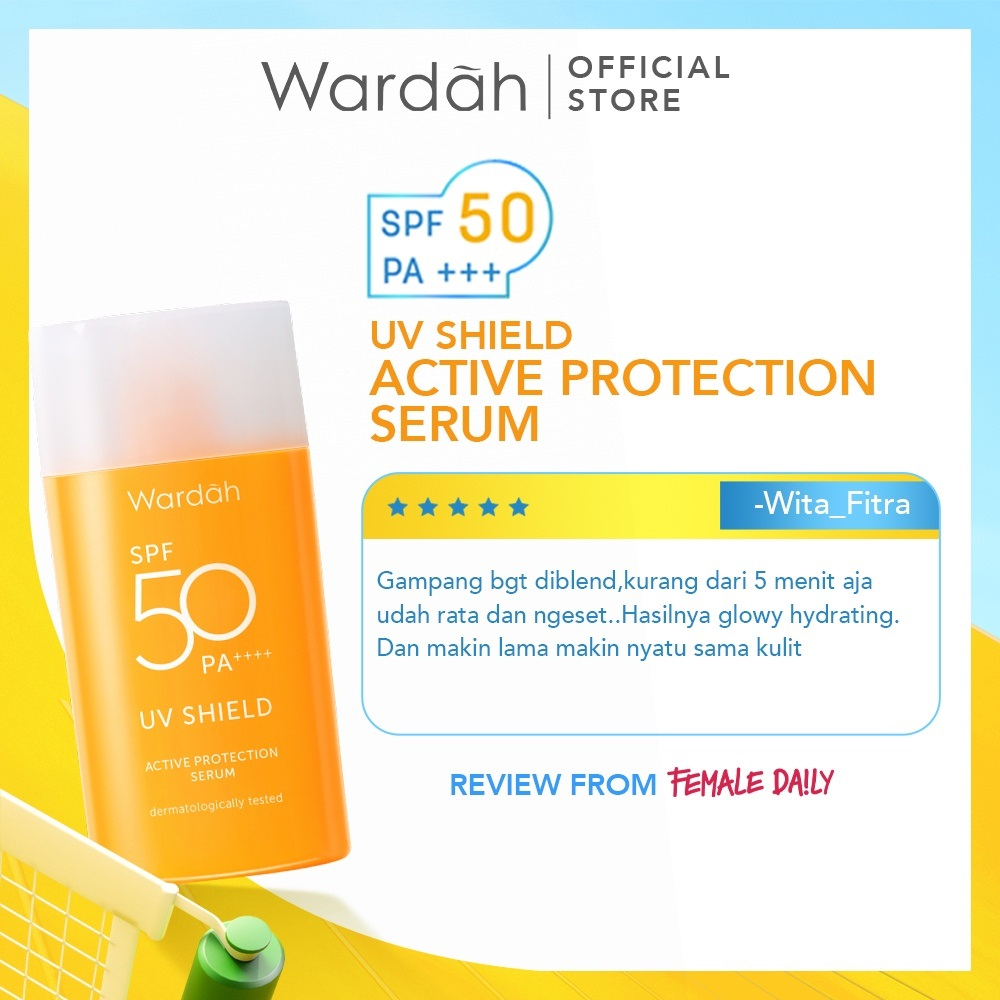 WARDAH UV Shield SPF 50 PA++++ Active Protection Serum, Sunscreen dengan Broad Spectrum Protection, 50x lebih optimal menjaga kulit dari sinar UV A/ UV B serta pancaran blue light berlebih.