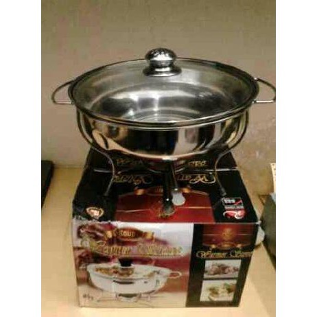Perlengkapan Rumah > Perlengkapan Rumah Lainnya > Warmer Stove Bulat Polos Tutup Kaca M-023 Kompor Baskom Tempat Memanaskan Sayur Soup Prasmanan Saji Stainless Steel