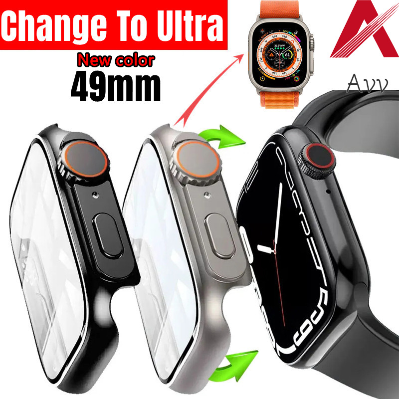 Jam Tangan > Aksesoris Jam Tangan > Aksesoris Jam Tangan lainnya > [Warna Baru] Upgrade Penampilan Ke Ultra 49mm Untuk Apple Watch6 5 44 44mm 40mm Case Tempered Glass Untuk Iwatch8 7 45m m 41mm Ganti Ke Ultra Untuk T500+Plus T500 T55 W26 X8 X7 I8 44mm