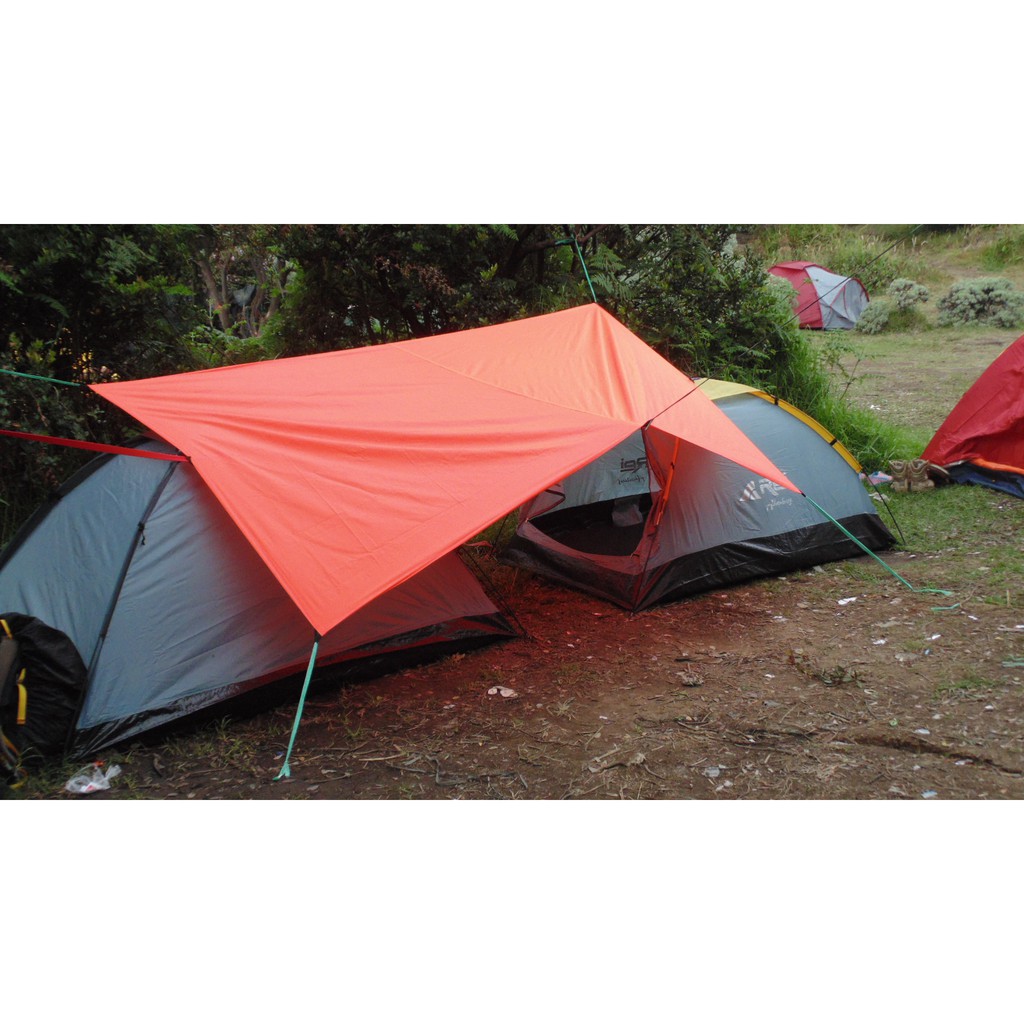 ❄ Terbuat dari bahan anti air yang fungsinya digunakan sebagai pelindung tenda dari hujan maupun cuaca. ❄ Selain itu Flysheet juga berfungsi sebagai pengganti tenda, dalam keadaan darurat fungsi dari flyshhet ini mampu memberi perlindungan untuk bermalam atau saat kondisi hujan.