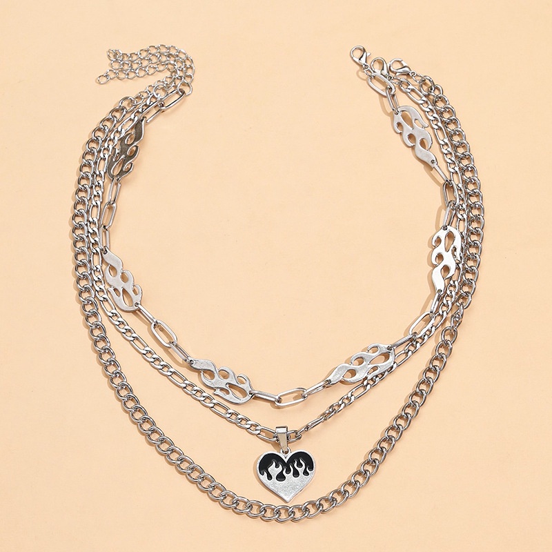 Aksesoris Fashion > Kalung > Rantai & Link > Warna Retro Yang Dipersonalisasi Berlebihan Multi-layer Memakai Desain Flame Love Trend Kalung Rantai Tulang Selangka