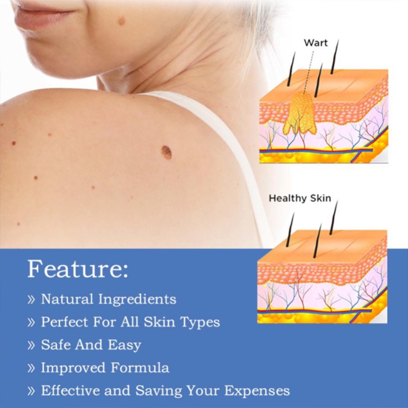 Fungsi: Menghilangkan ketidaknyamanan – Meringankan rasa sakit dan ketidaknyamanan yang terkait dengan pertumbuhan kutil, Krim Kutil mengurangi gesekan pada permukaan kutil sehingga iritasi yang disebabkan oleh gerakan atau kontak berkurang. Bekerja cepat dan efektif– krim kutil menembus dan bekerja dengan cepat dari bagian dalam kutil, menghancurkan struktur kutil dari dalam ke luar, memberi Anda hasil yang Anda inginkan. Perawatan mudah– Krim kutil hadir dalam botol kecil praktis yang kecil dan ringan untuk dibawa, dan mudah diaplikasikan. Aplikasi yang mudah berarti Anda dapat menjaga perawatan Anda tetap konsisten dan efektif. Aman untuk segala usia – Krim kutil kami aman bahkan untuk anak-anak, yang sering terkena kutil karena gaya hidup aktif mereka. Dengan pengawasan orang dewasa, anak-anak juga bisa menggunakan krim kutil!