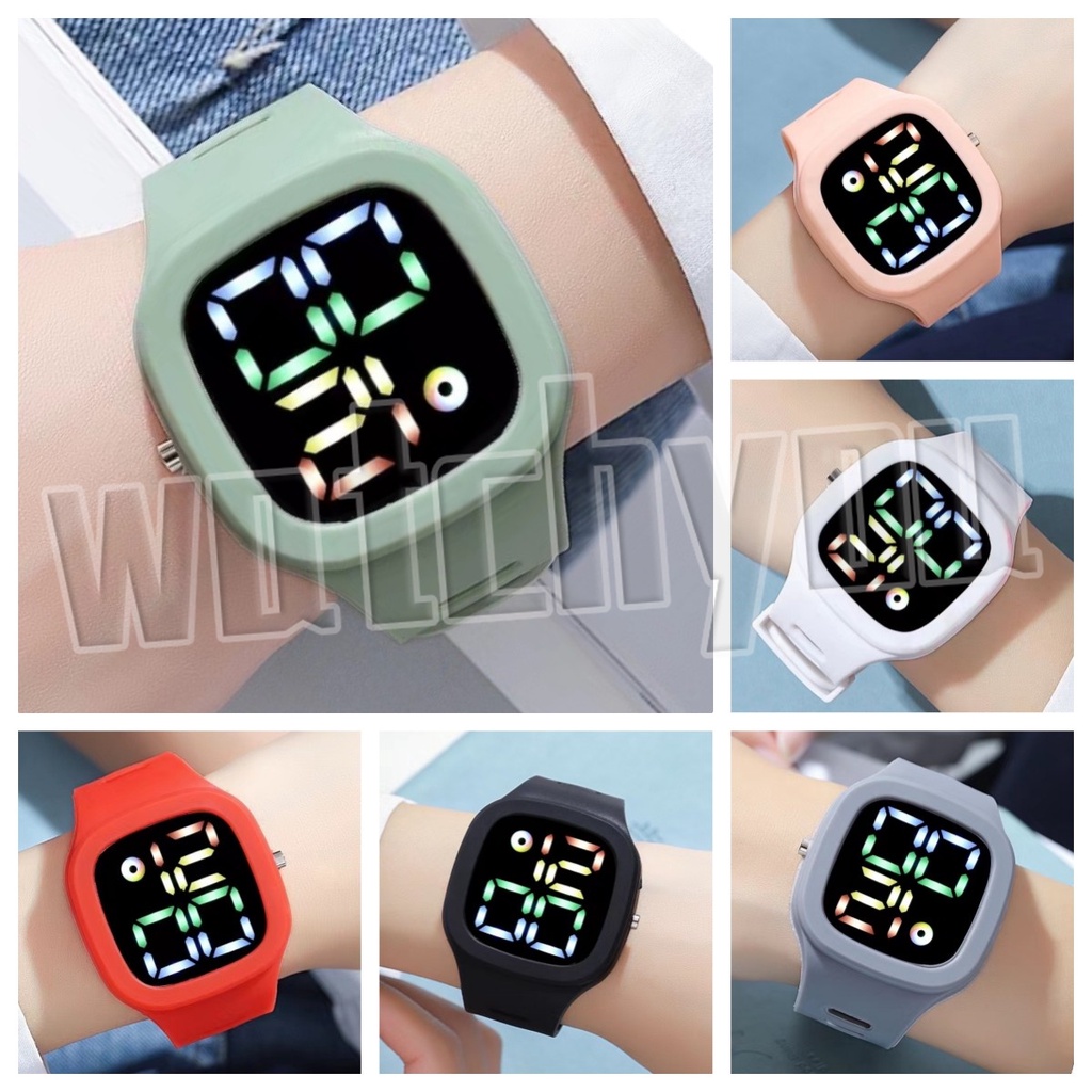 Gaya: kasual/santai Tipe Gerakan: Elektronik Bahan Tali: Silikon Diameter selai: 38mm Ketebalan selai: 8mm Lebar Tali: 22mm Panjang tali : 26cm Berat selai: 30 g 1KG = 34 buah