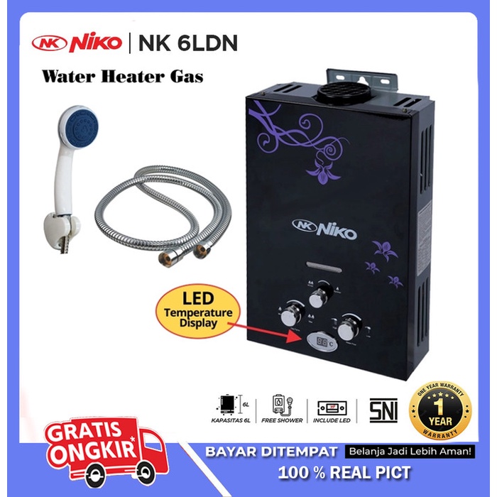 Water Heater Gas NIKO Digital LED Display NK-6LD New Varian Dari Water Heater Gas Niko, Sekarang Di lengkapi Digital LED Temperature Display membuat Water Heater Ini Lebih Aman digunakan, modern Dan Lebih Elegan.