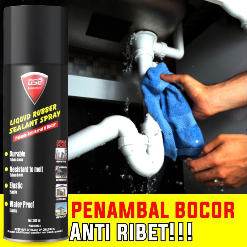 # Cara pengunaan Tutorial pemaikaian liquid rubber sealant spray : 1. Bersihkan semua media yang akan dilapisi atau akan di Semprotkan harus bersih dan kering. 2. Kocok kaleng selama 60 detik agar semua isi dalam kaleng tercampur rata. 3. Kocok atau goyangkan liquid rubber sealant spray kurang lebih +- 30 detik s/ d 1 menit 4. Pastikan terdengar suara pemberat yang terdapat dalam kaleng hingga terasa cairan sudah merata , hal tersebut menandakan cairan liqidud rubber sealant spray sudah merata / tidak ada endapan dan siap digunakan 5. Semprotkan liquid rubber sealant spray pada objek yang mengalami keretakan maupun kebocoran hingga merata ketebalan di sesuai kan dengan tingkat keretakan maupun kebocoran 6. Gunakan sarung tangan untuk menjaga kebersihan tangan anda 7. Jarak semprot 30 cm, Semprotkan media Hingga rata dan tunggu hingga mengering 3 - 5 Menit, Lalu semprotkan kembali untuk lapis kedua kalinya, ulangi bila perlu