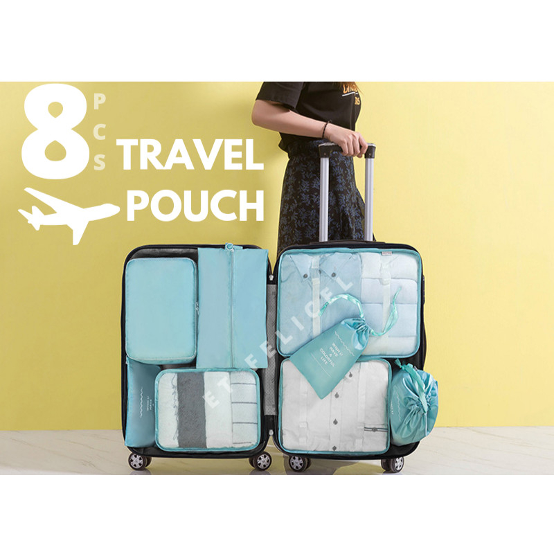 Isi koper sering berantakan saat bepergian? Susah mencari atau mengambil barang-barang dalam koper karena tidak tertata rapih? Waterproof Travel Pouch 8in1 ini bisa dijadikan solusi untuk susun dan atur barang-barang Anda dengan menggunakan Travel Set 8 pcs kami dalam berbagai ukuran, masing-masing dengan fungsinya mereka sendiri