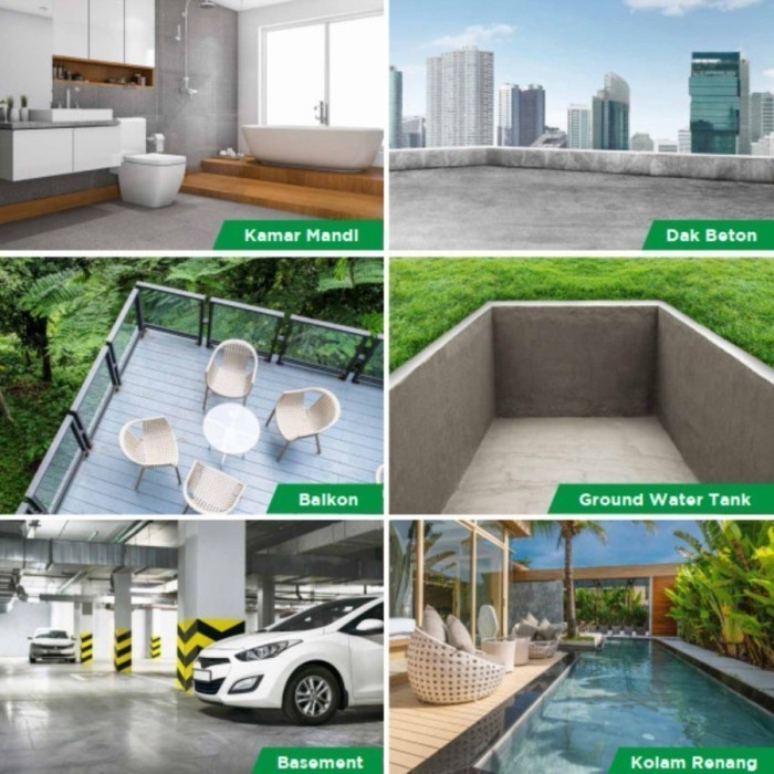 Kegunaan dan keistimewaan Kedap air Sangat elastis Lebih kuat dari cat pelapis anti bocor Tidak Beracun Bermutu tinggi Untuk permukaan yang selalu terendam air Tahan lama