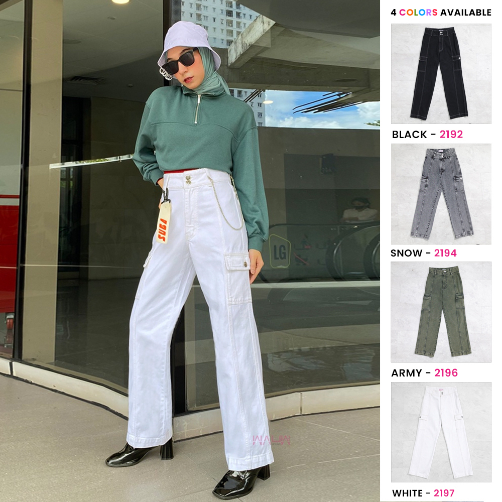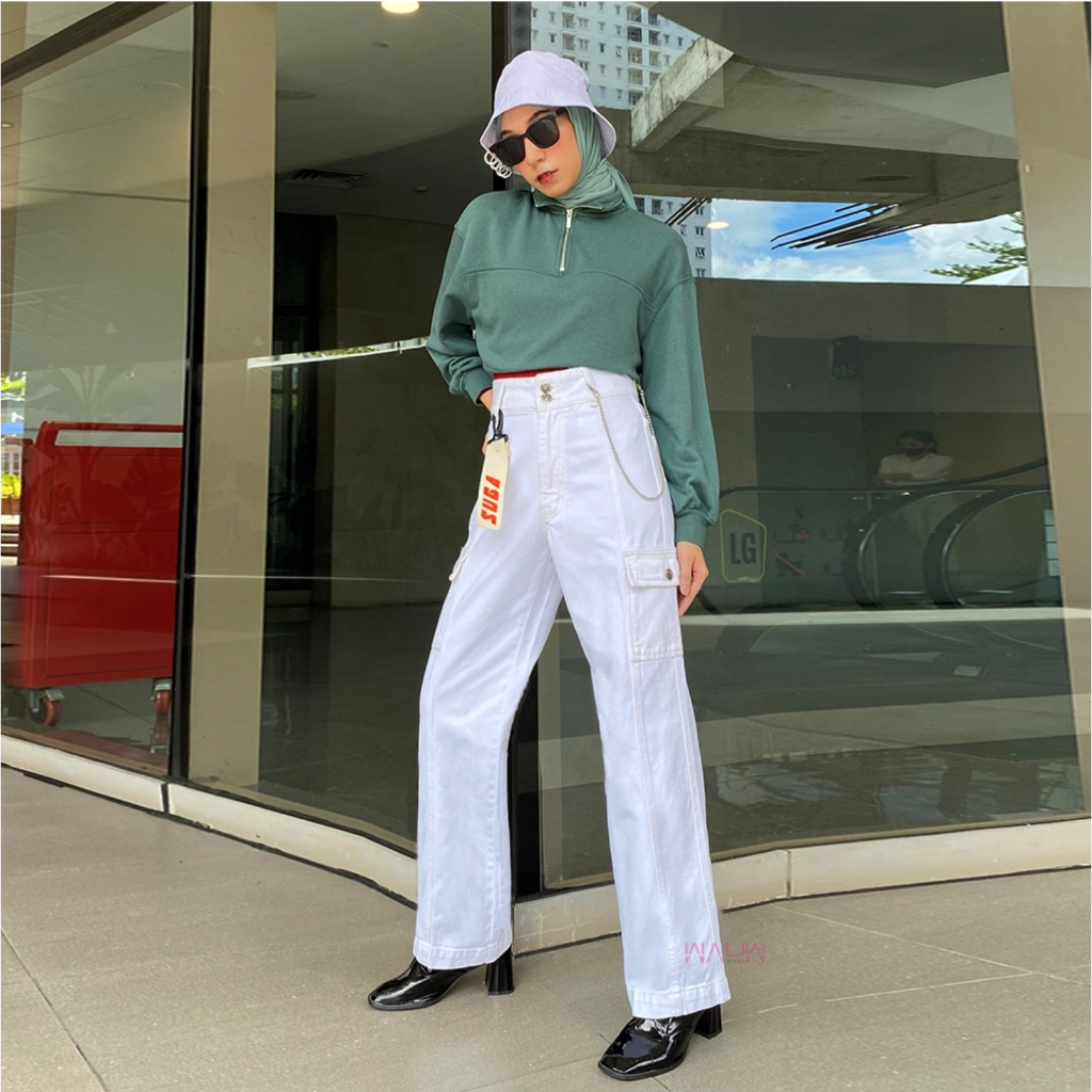 Highwaisted cargo jeans trendy, celana ini akan membuat kamu lebih keren dan edgy.