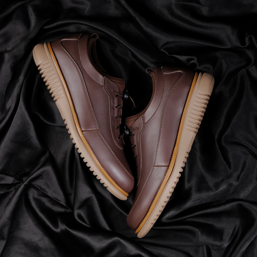 merupakan sepatu casual formal-modern dengan memadukan desain upper formal berbahan Kulit Asli Yang Dihancurkan Dan Didaur Ulang Kemudian Dilapisi Menggunakan Bahan Sintetis, dan dikombinasikan dengan outsole modern berbahan microtech yang flexible dan kuat. Material bagian lining menggunakan mesh membuat kaki lebih nyaman, dan insole menggunakan Ergolite yang empuk membuat kaki tidak cepat lelah. cocok digunakan untuk outfit casual/semi-formal, khususnya untuk digunakan ke kantor atau acara formal.