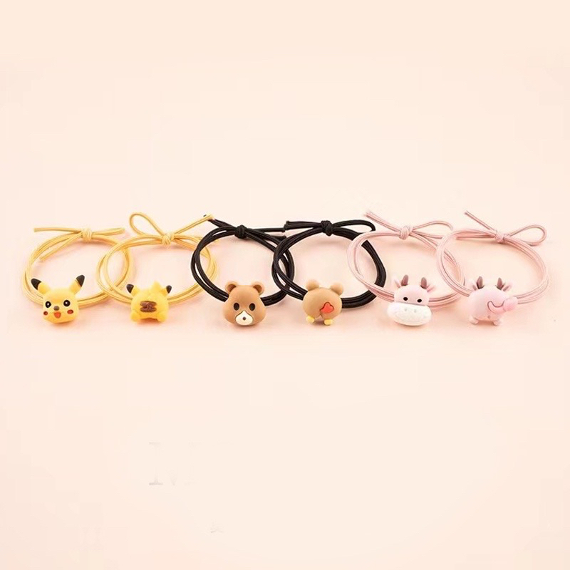 WB220 2 Pcs Gelang Ikat Rambut Elastis Karakter Kartun Couple