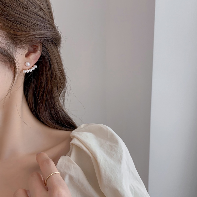 Detail We Flower Chic Geometric Pearl Beaded Stud Earrings for Women Girls Korean Fashion Ear Jewelry