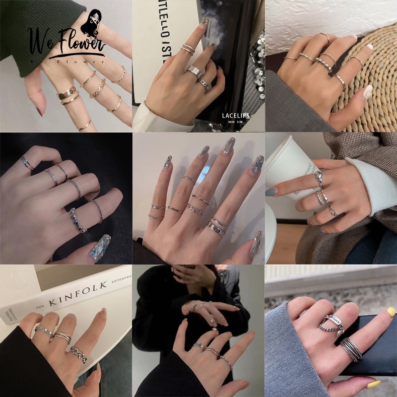 Detail We Flower Set Perhiasan Cincin Knuckle Silver Bentuk Geometris Gaya Boho Untuk Wanita