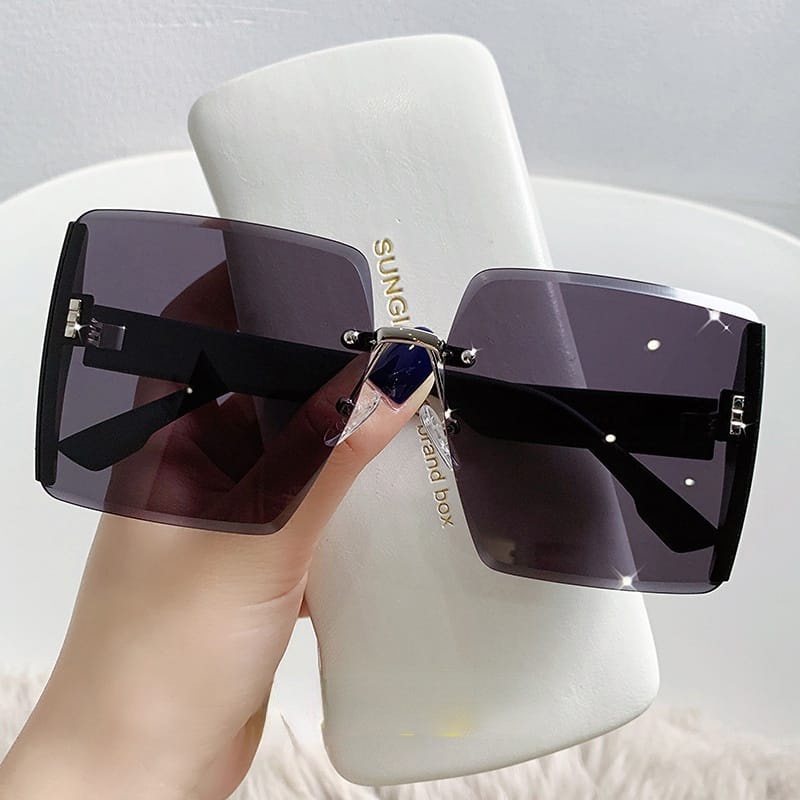 Aksesoris Fashion > Kacamata & Aksesoris > Kacamata Hitam > WE Kacamata Pantai Bingkai Persegi Untuk Wanita Hitam Anti UV Tanpa Bingkai Bentuk Persegi Frame Logam