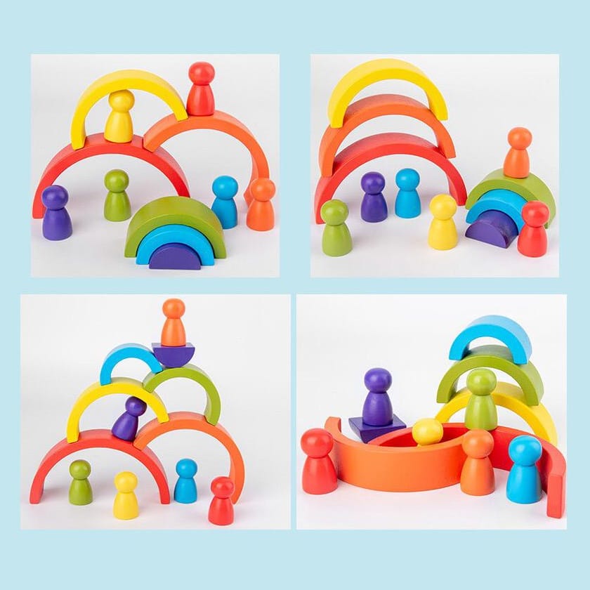 Video perkenalan produk WE Mainan Montessori Wooden Rainbow Block + Peg Doll Balok Pelangi. Sumber: Shopee.