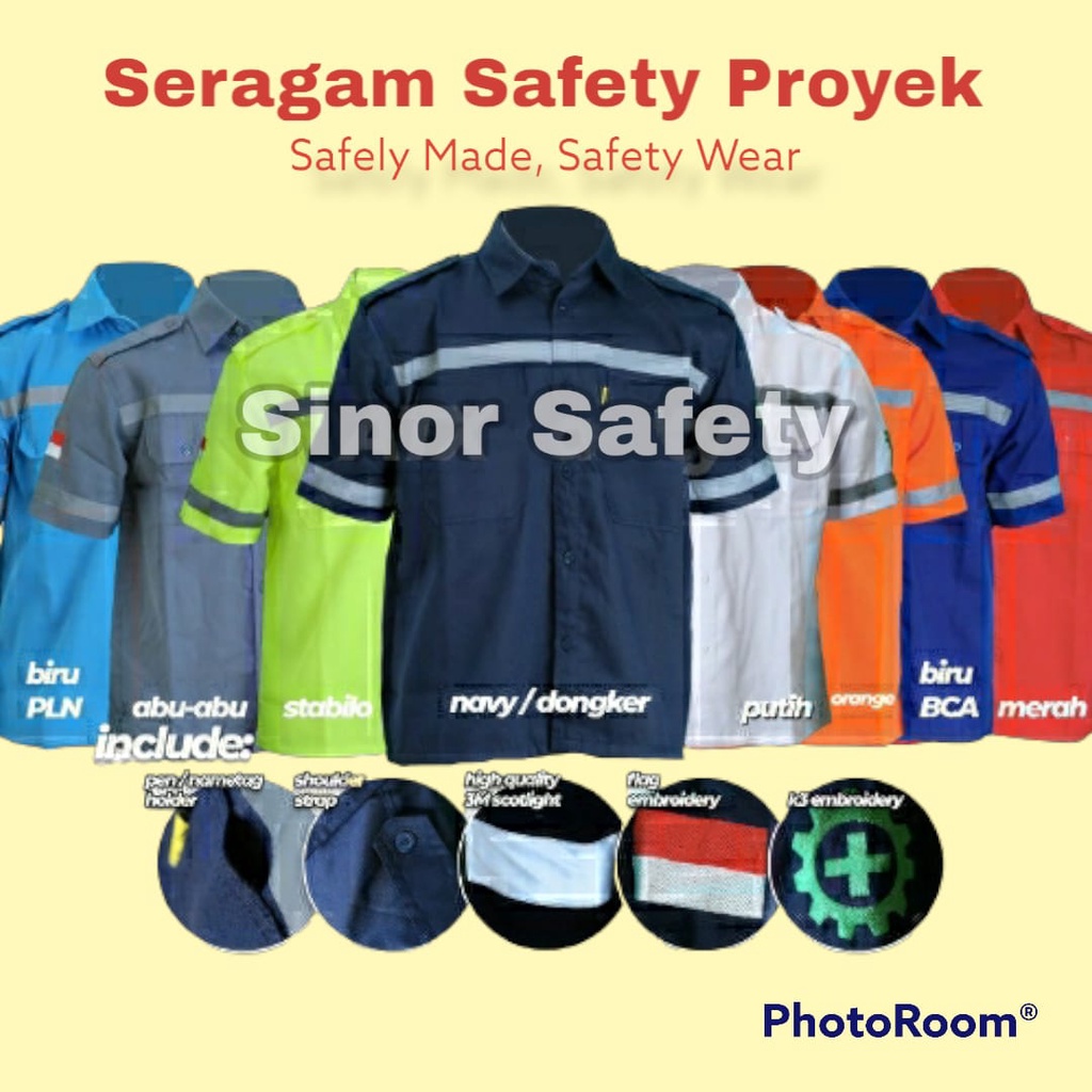 Wearpack Safety Lengan Pendek Baju Seragam Kerja Pabrik Proyek