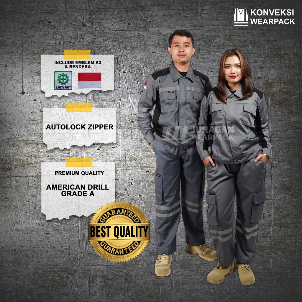 Wearpack Safety Setelan Atasan Warna Abu Hitam Bawahan Cealana Warna Abu, atasan model Ultimate Produk Terbaru yang super keren sudah lengkap dengan celana safety Abu perpaduan warna yang matching.